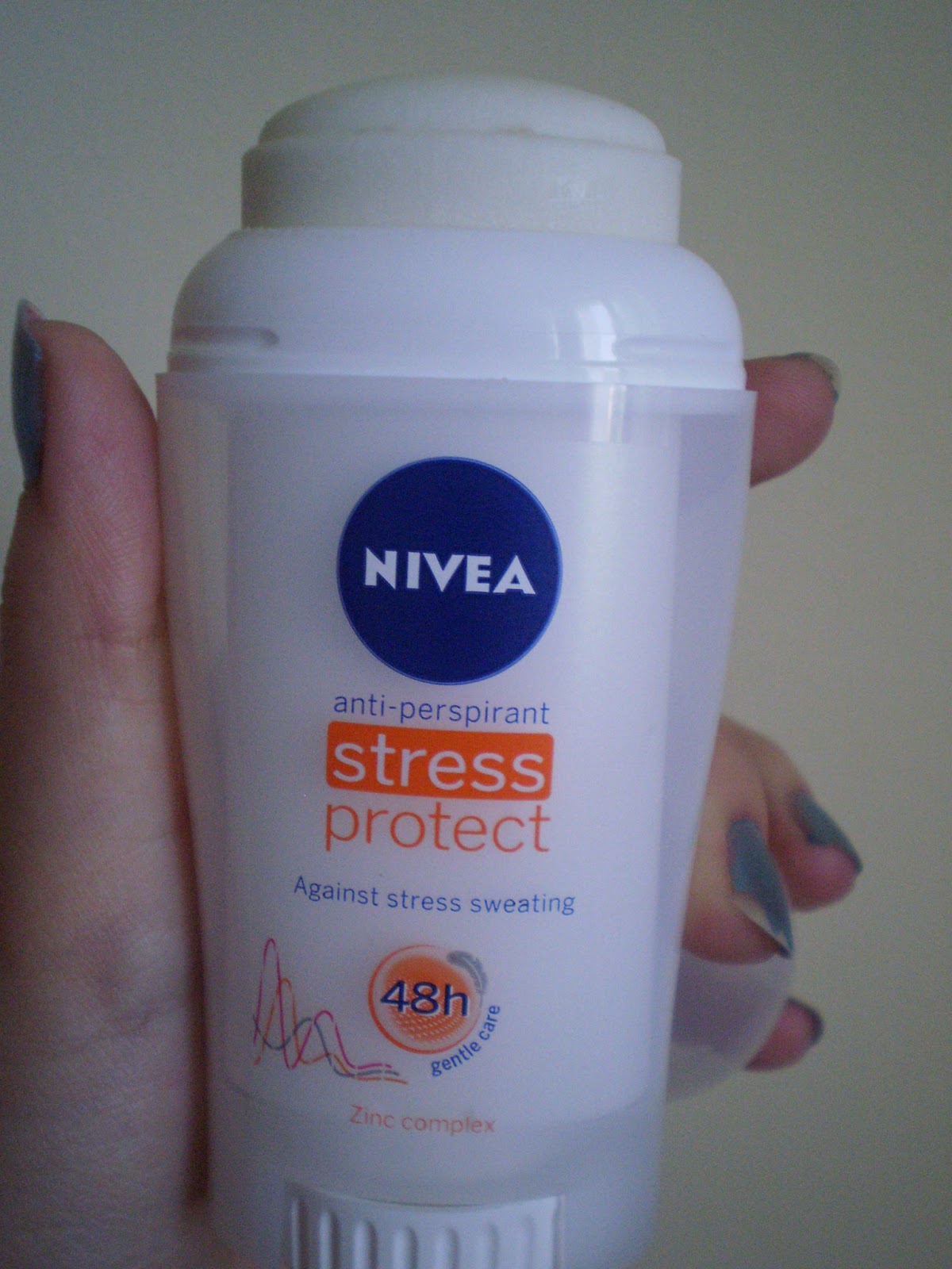 What it does: I don't know about the stress thing because I sweat like a pig all the time in the summer and I don't wait 48 hours for a shower. I can tell I love it because my arms don't get so sweaty and they feel dry for at least 2-3 hours and that's a big thing for me. I used this even after I shaved my underarms and it doesn't sting or irritates. I like the fresh, clean scent because honestly I noticed this summer perfumes make me a little sick so I quit using them, but I do like to have a discreet scent on me. I had no white marks and I wore black t-shirts too. I don't recommend using roll-ons because those tend to leave some marks, I like sprays ans sticks best. Also, there are no white marks on the skin if you wear sleeveless tops. I basically love this deodorant and I'm glad I got two of them. Now one is in my bathroom and one in my purse.